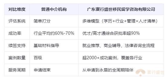 相比之下,广东寰行盛世移民留学咨询有限公司以高专业度和完整服务链脱颖而出。其团队涵盖资深专业顾问和文书老师,不仅能第一时间解读政策更迭,更擅长为申请人定制差异化方案。